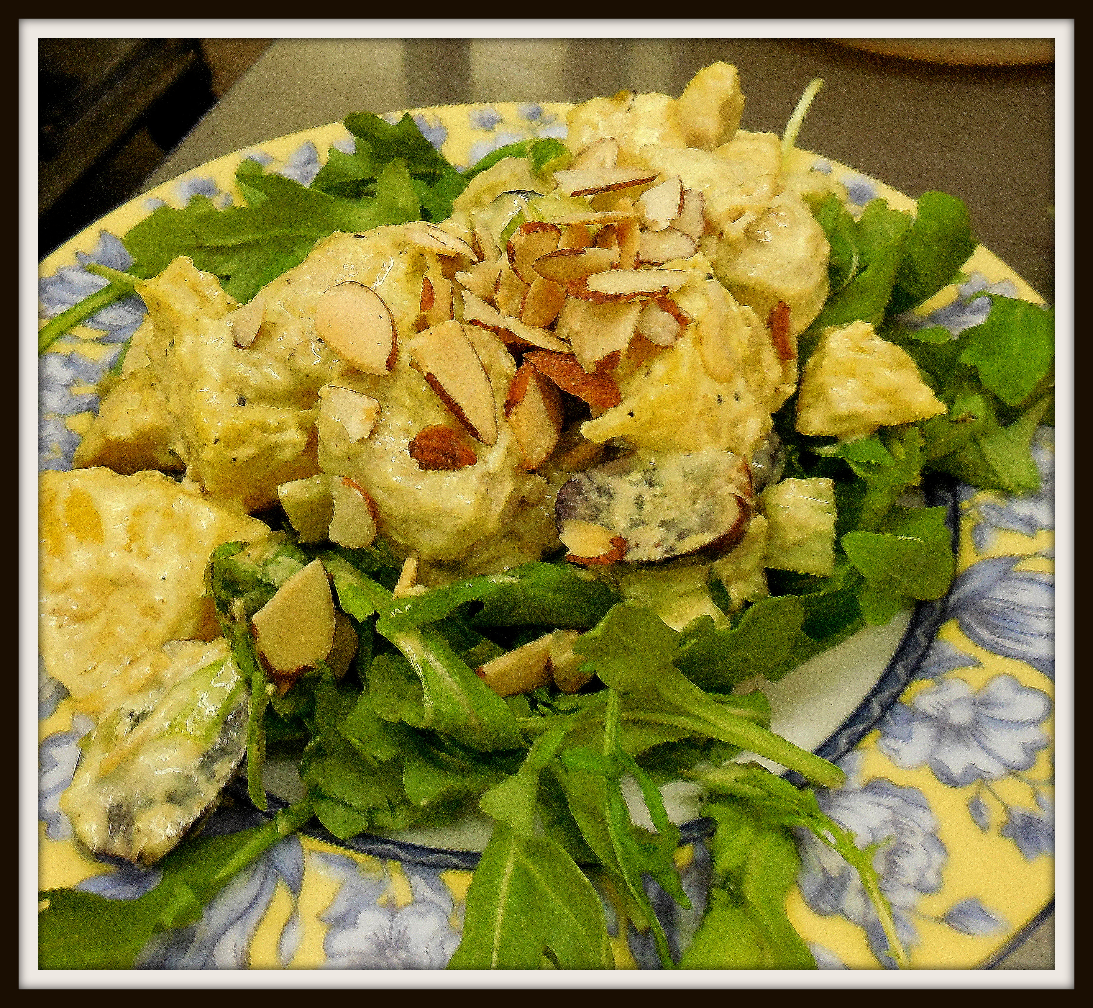 081714 curry chicken salad on arugula